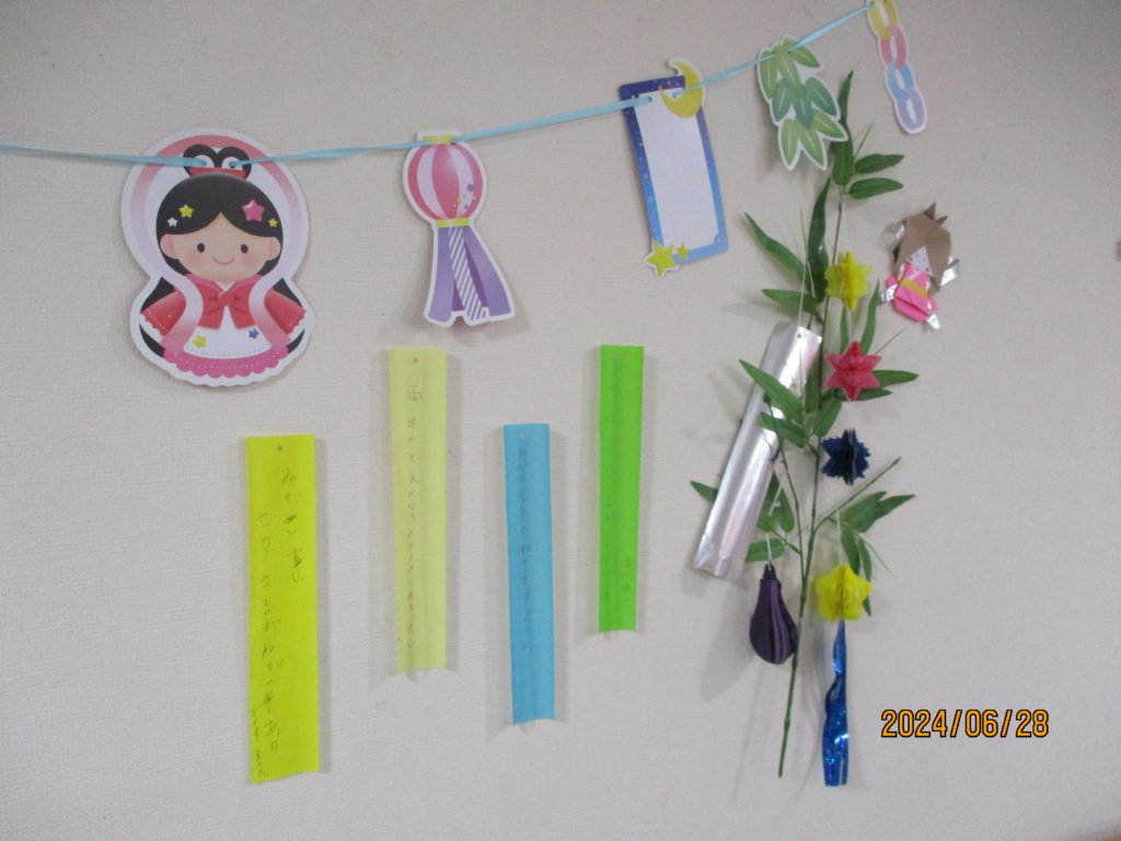 レクリエーション活動では、7月は七夕飾りを制作しました。
